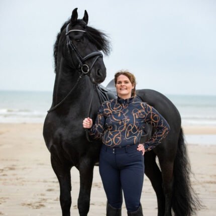 Montar Curve Haily Bridle Print Ladies Long Sleeve Training Shirt, Navy