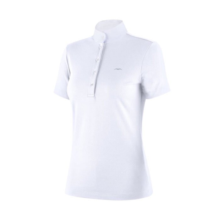 Women’s short-sleeved riding polo made from the new Rete Star material. The material is an ultra-light mesh material and is ideal for summer thanks to its airy, quick-drying, and bi-elastic properties. The polo captivates with its simple design, with 5 functional buttons and the thermo-taped ANIMO lettering on the left side.