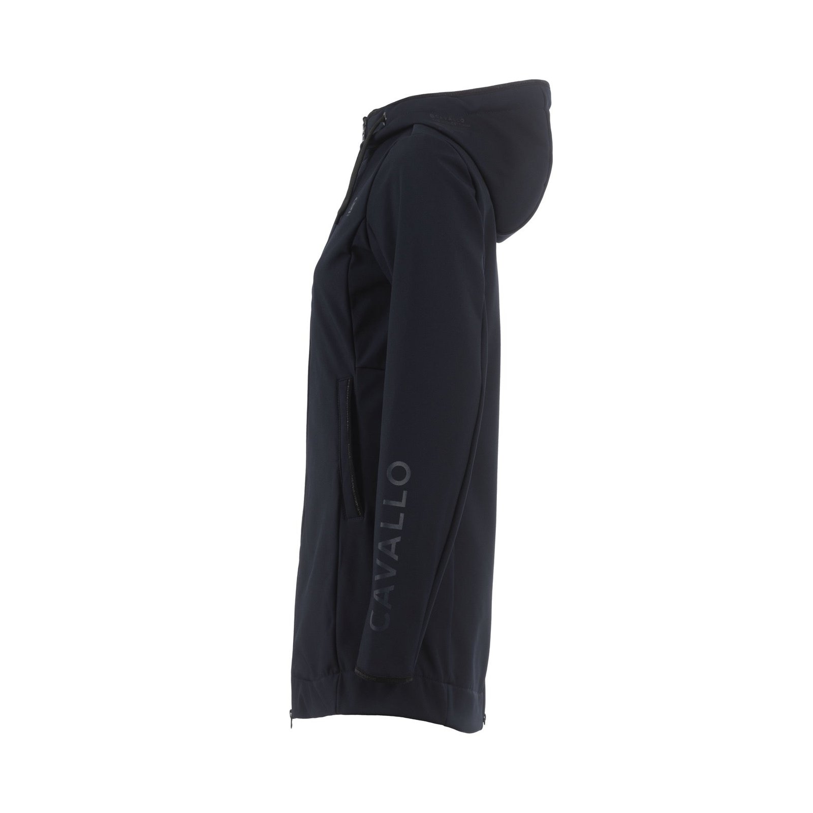 • hood edge enclosed with black, elastic Cavallo logo edging tape