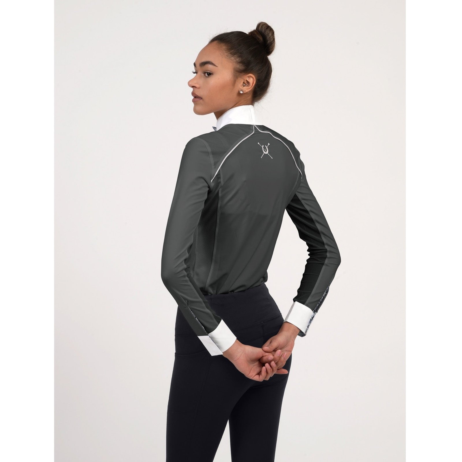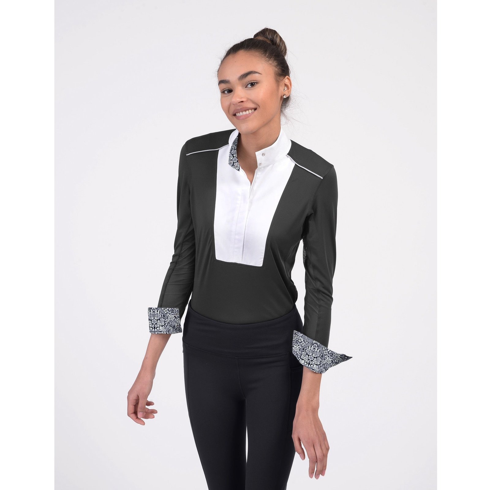 You asked for a SkyCool® Show Shirt and this shirt delivers. Made of the lightest weight fabrics to give you the lightest weight sun shirt ever. Feel the cooling comfort in warm, humid weather conditions by converting sweat into cooling energy so you stay dry and comfortable. SkyCool® fabric is infused fiber technology for cooling, moisture absorption, fast drying, 2-way air circulation and 50+ UV protection. 4-way stretch flat weave fabric offers more stretch and superior comfort. Classic white poplin bib, collar and cuffs lined with unique Liberty® London prints, mesh shoulders, sides and underside sleeve inserts add additional cooling airflow. Pull-over style shirt features a hidden low profile YKK zipper placket and no-show collar and cuff snaps for a polished show look, stock tie loop, shirttail hem and a tailored show fit.