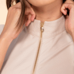 -The officer collar is closed with a gold zipper.