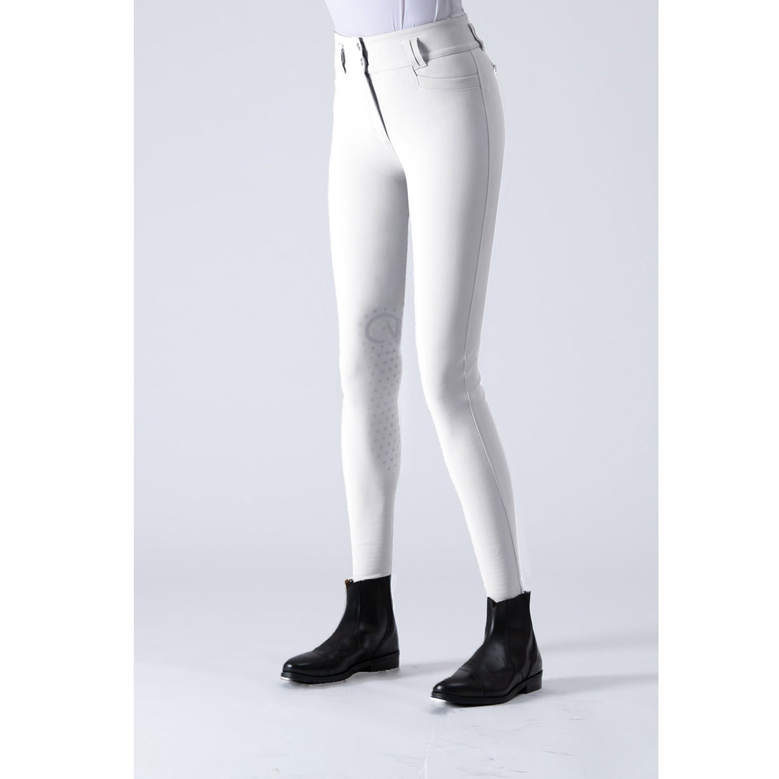 EGO7 Jumping CA breech, women’s horse riding trousers with flattering front pockets, high waist with V cut and zip detail on the back. Superior performance and style guaranteed thanks to the signature cut developed by Italian designers and the use of the best technical materials for sports. The revolutionary fabric, 100% jersey made in Italy, ensures a perfect fit with four-way stretch for unrestricted movement, support and shape retention: a comfort never felt before, breathability and better contact with the horse while riding. A modified high waist sits fashionably high in front and rises in back for complete covers.
