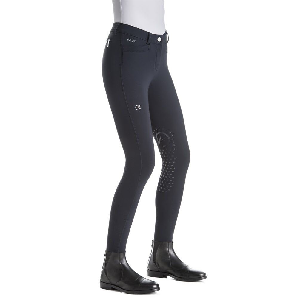 Riding Breeches with front pockets and zip detail on the back, superior performance and style guaranteed thanks to the perfect ergonomic cut developed by Italian designers and the use o fthe best technical materials for sport. The revolutionary fabric, 100% made in Italy jersey, gives a perfect fit and adherenc eto the leg, a comfort never experienced before, breathability and contact with the horse. Performance guaranteed with teh patented COMBRAX button, and the innovative grip, carefully positioned at the knee, which allows greater freedom of movement and stability in the saddle, and blocks the sliding of the trousers and shirt on teh belt.Â