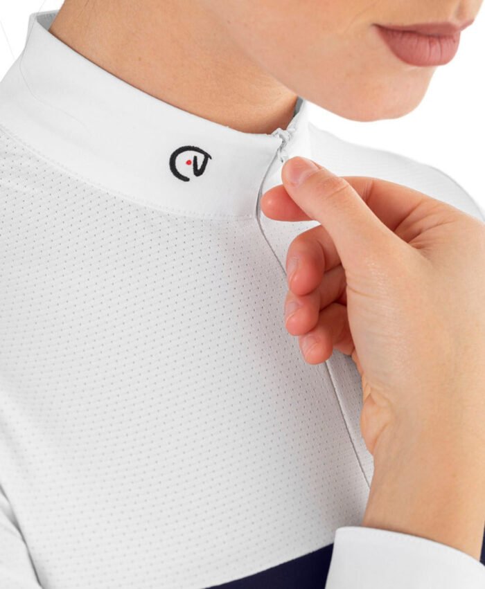 The half zip show shirt, elegant style, performance and technology. Breathable, quick drying, anti-wrinkle fabric, 100% jersey made in Italy perfect fit, comfort, breathability and maximum freedom of movement. Fashion Zip Competition Lace Shirt, elegant style combine to the most advanced performance technology available. The revolutionary fabric, 100% jersey made in Italy, guarantees perfect fit, comfort, breathability and maximum freedom of movement. With its outstanding performance features, such as quick drying, odor control and anti-wrinkle, it keeps Ego7 top from losing its shape and beauty and makes it travel friendly, perfect for horse show weekends.