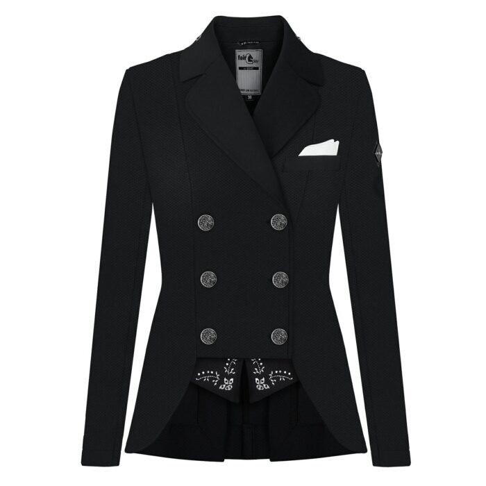 Fair Play show jackets can be machine washed in a cold, gentle cycle. Do not dry clean. Tumble dry on low and use a cool iron if needed.