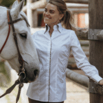 This white Fior Da Liso blouse impresses with classic elegance and finely coordinated details. The elegant double collar and button placket, lovingly trimmed with a contrasting check fabric, give it a unique, elegant look, while the checkered interior trim on the collar and cuffs creates tasteful contrasts.