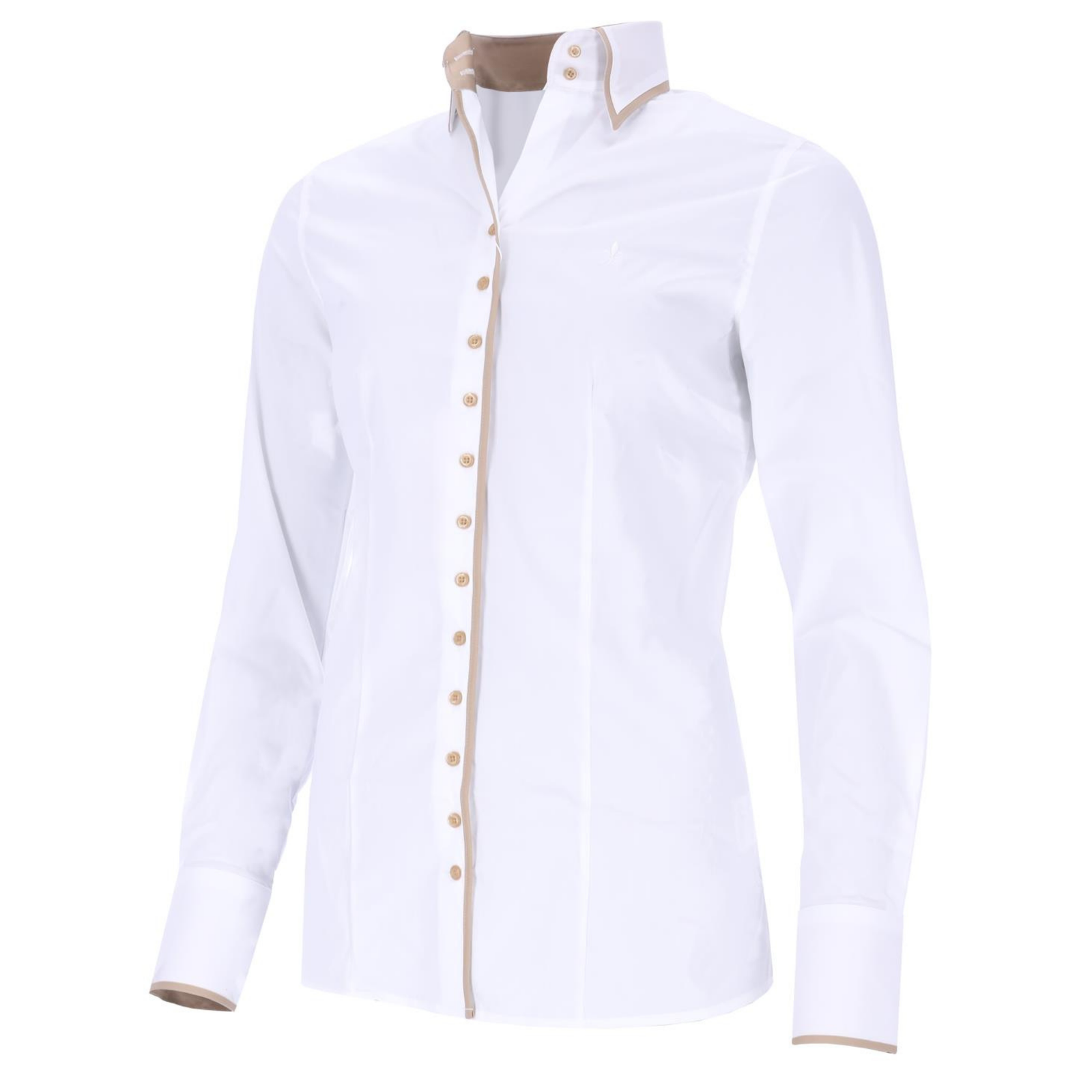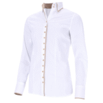 “Sara London B.” is not a simple, classic white blouse. It combines simple elegance with sophisticated accents. The pure white is tastefully complemented by fine beige details on the collar, button placket, and cuffs. A special highlight is the innovative collar finish, which gives the blouse a unique and sophisticated touch.