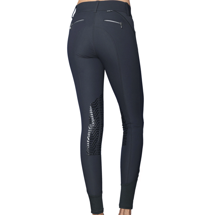 The Aubrie pro breech features imported Meryl® technical fabric for maximum comfort with moisture wicking properties. This breech features ultra figure flattering seaming and piping details, grippy geometric silicone knee patches, a soft flexible knit leg cuff for a form fitting feel under your riding boots, and our signature logo embroidery. Designed for the professional or serious competitor.