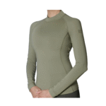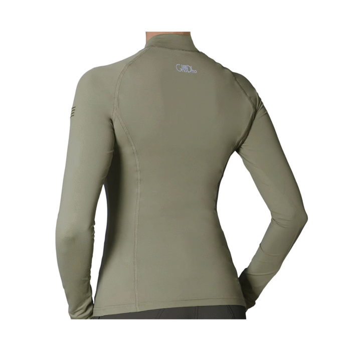 Our base layer shirts are made from Tactel® technical fabric that draws moisture away from your skin while protecting you from the sun. Our design features a sleek fit, flattering seaming, and an elegant embroidered logo on the sleeve.