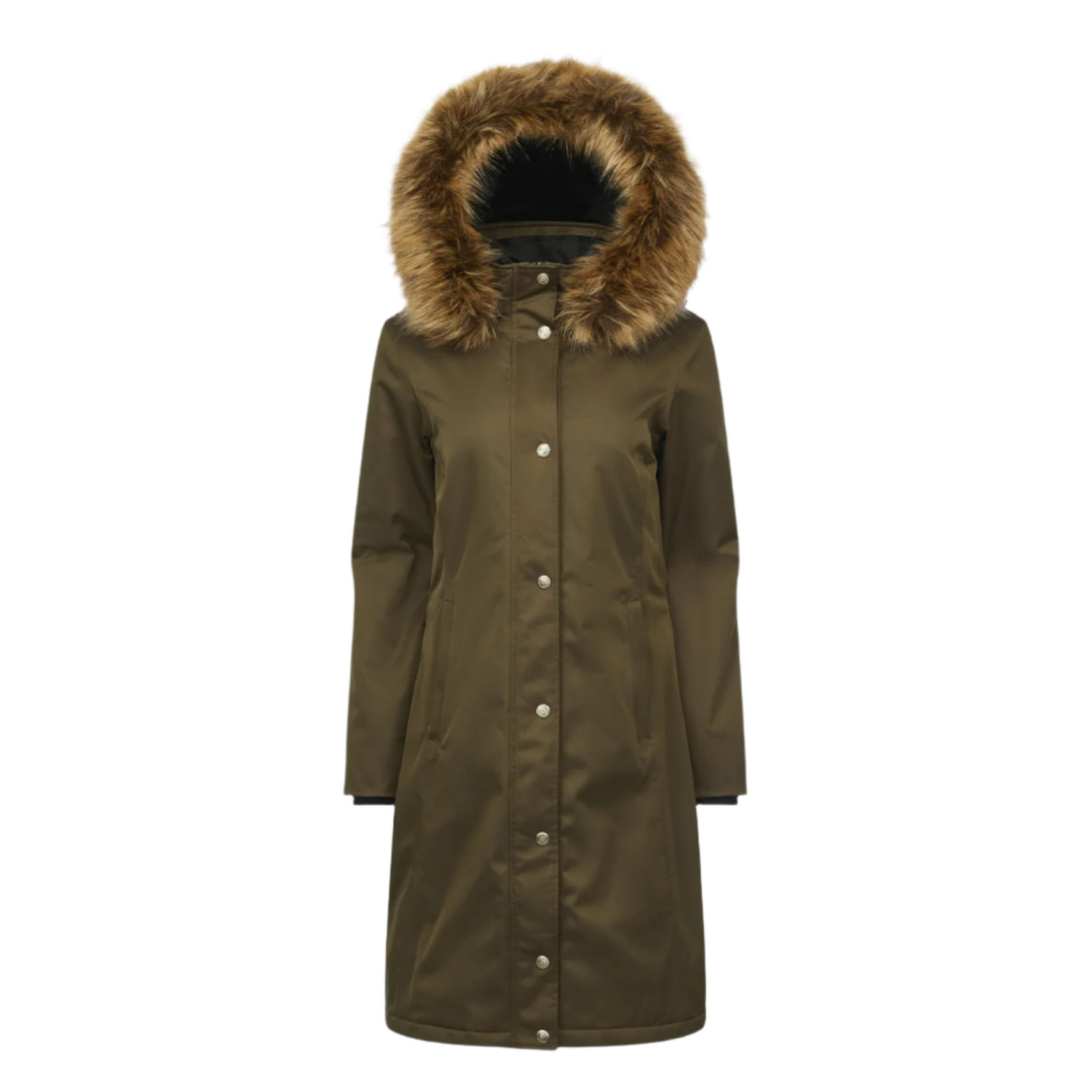 • Detachable hood with removable faux fur trim