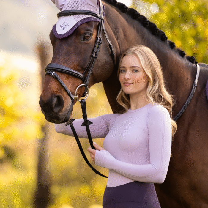 Stay cool in this lightweight, UV30+ breathable training top with a cooling treatment in the fabric.A flattering, body contouring shape, antimicrobial sweat-wicking fabric and long sleeves with thumb holes make this the ideal top for active wear.Subtle rubberised LeMieux badge branding on the arm lends a touch of subtle sophistication.