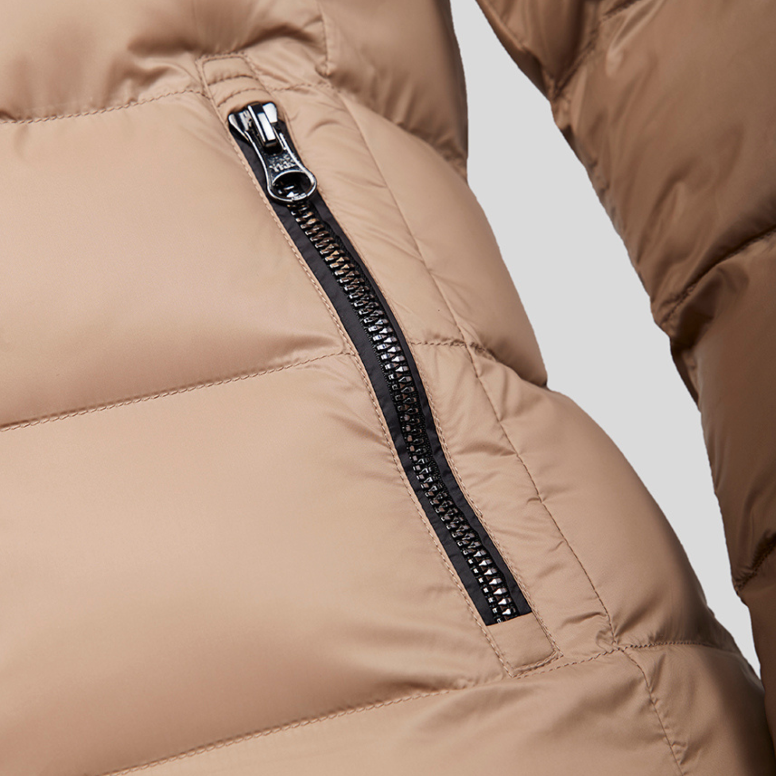 Material: High-quality polyester, water-resistant fabric with a smooth, matte finish and waterproof softshell on the shoulders. 100% Polyester Padding as loose fibers (fake down) containing 30% DuPont Sorona fibers with high insulation value even it feels extremely light weight.Â