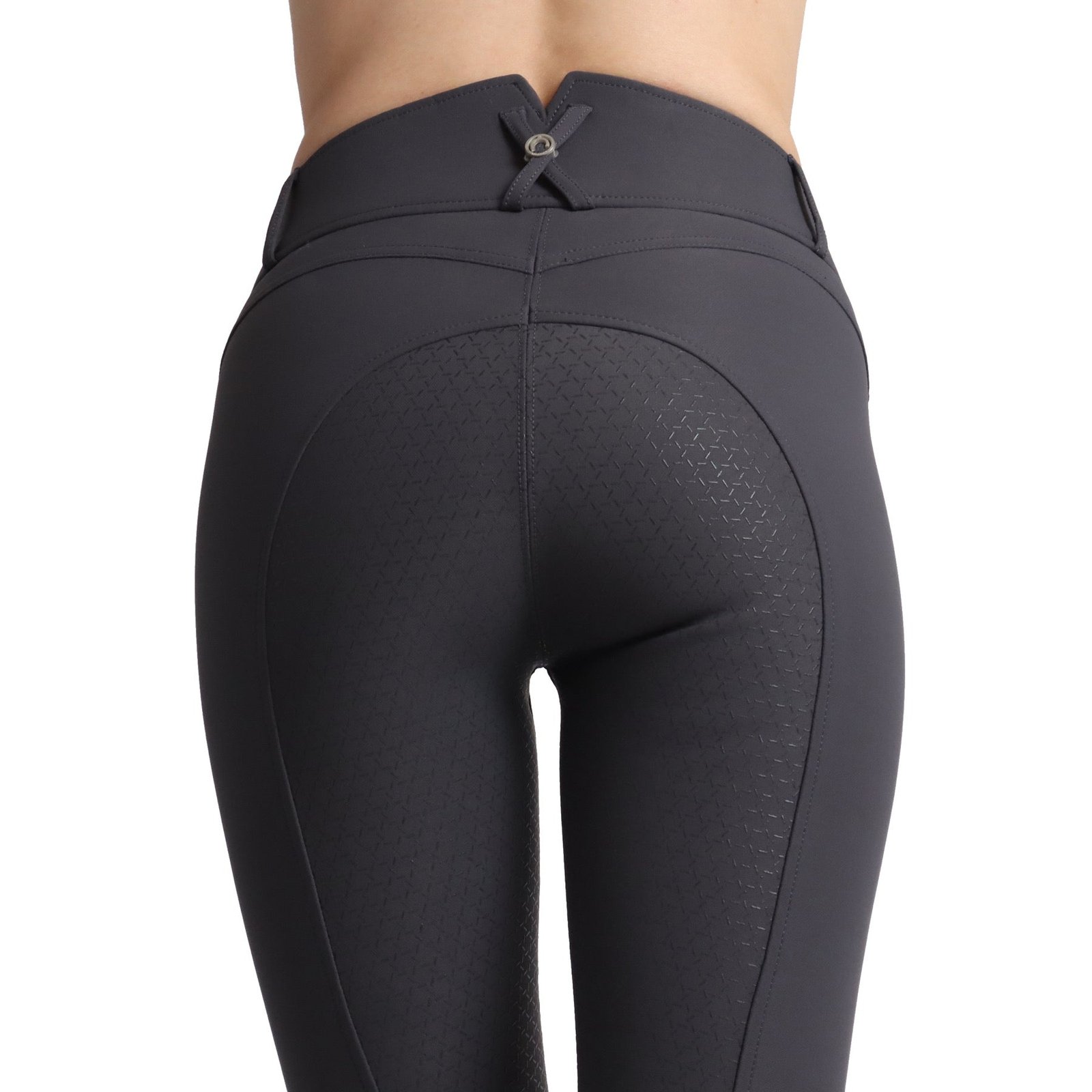 The Molly Model is part of our Essential Collection. These breeches are available in trendy high waist cut. The back has a v-cut in the waistband. That assure a tight fit at your waist. At the front there are 2 pockets, one decorated with a silver bit with small clear rhinestones on. At the ankle there is a lycra triangle for perfect fit.