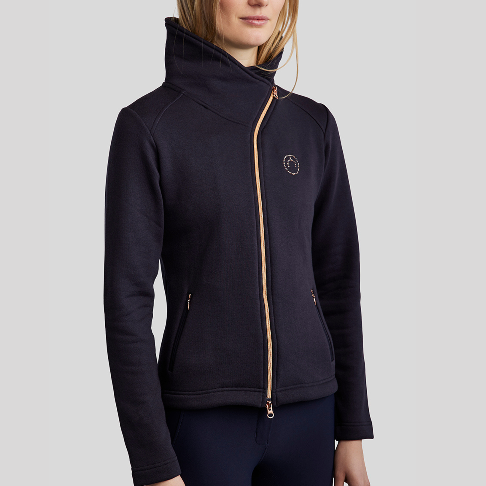 Introducing the Naja Sweatshirt with Rosegold Full Zipper and Crystals: a fusion of fashion and functionality. This sweatshirt, adorned with rose gold crystal details, features a Rosegold full zipper and convenient zipper pockets. Elevate your riding wear with a touch of elegance. Experience comfort and style like never before with the Naja Sweatshirt—where practicality meets chic sophistication. Discover the unparalleled comfort of our sweatshirt material.