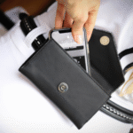 So convenient and fancy, the leather phone pocket is essential to stay connected while riding and to carry our phone everywhere we go. It fastens on the belt thanks to two buttons. It is light and easy to put on. It can have any kind of phone, even the bigger ones and remains stable at any speed. The phone cannot disturb the rider.