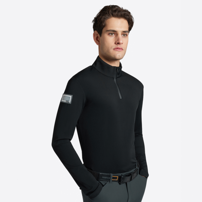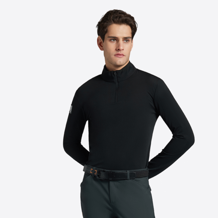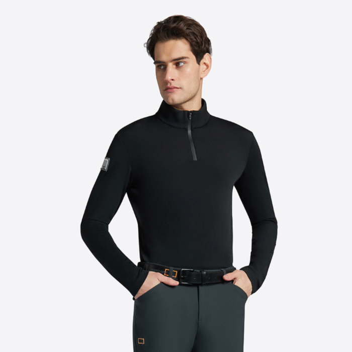 The Rider’s Gene men’s training zip polo in jersey fleece is perfect for training sessions, offering both comfort and style. Made from high-quality jersey fleece fabric, it ensures excellent breathability and a comfortable fit. The design features a water-repellent matte zip with the puller mounted on a coated side for a secure and practical closure.