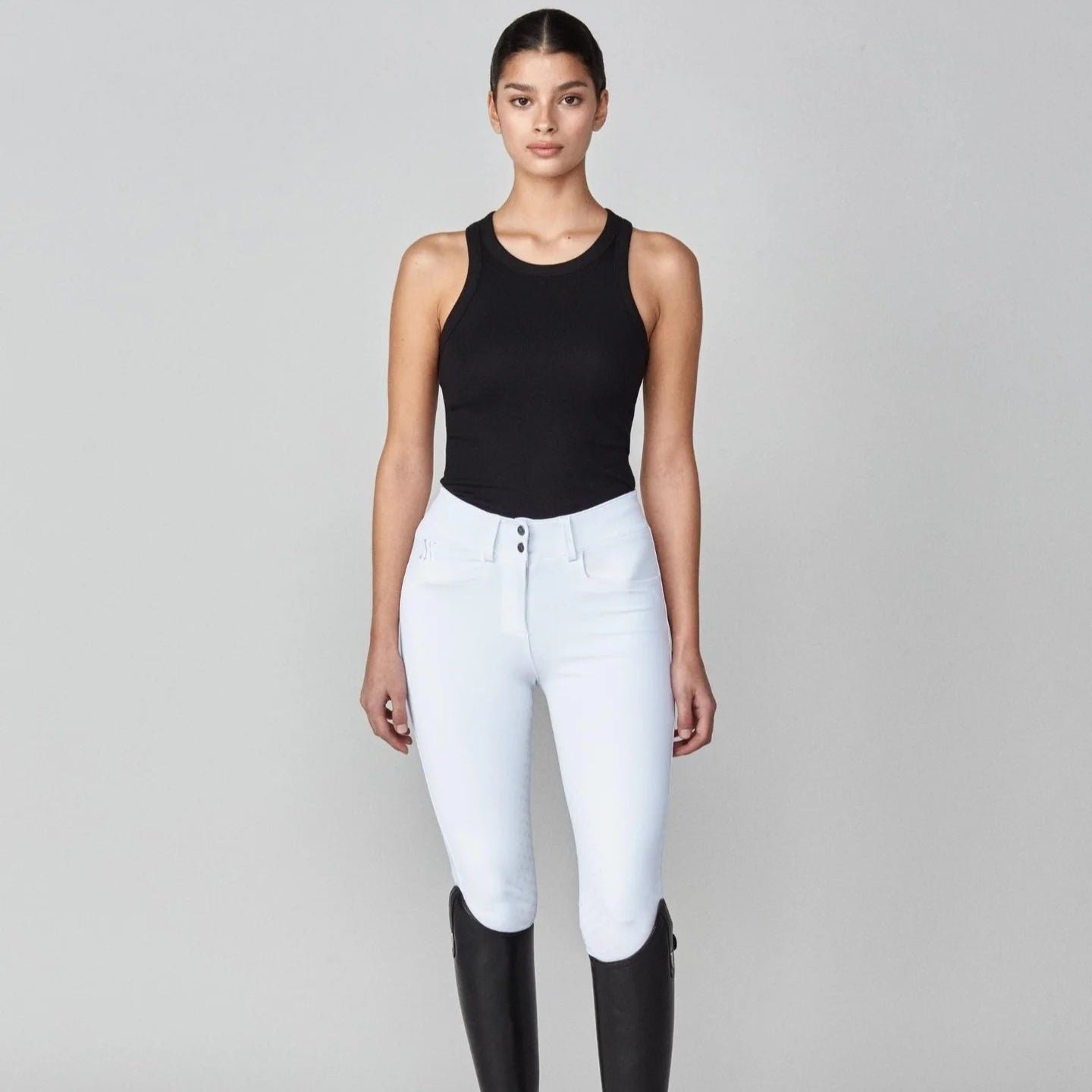 The Timeless Riding Breeches are designed for every discipline, featuring a slightly over mid-rise fit, square pockets, and a no-front-seam design for smooth, irritation-free comfort. Made from our compressive yet soft fabric, they are breathable, fast-drying, and finished with a sleek sock ending for a flawless fit under your boots.