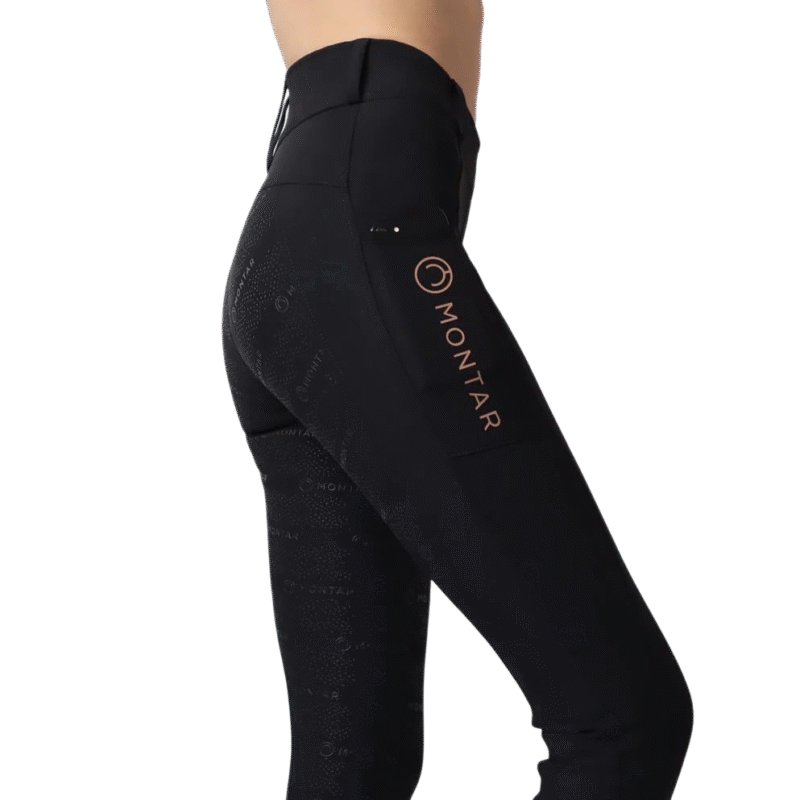 Montar Michelle Rosegold Pull-on Full Grip Riding Tights, Black